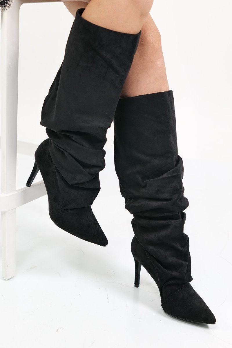 Crne brušene čizme na tanku petu